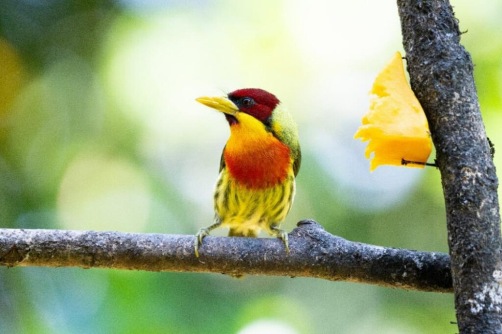 Versicolored Barbet at a feeding station (photo Andrew Cutler).